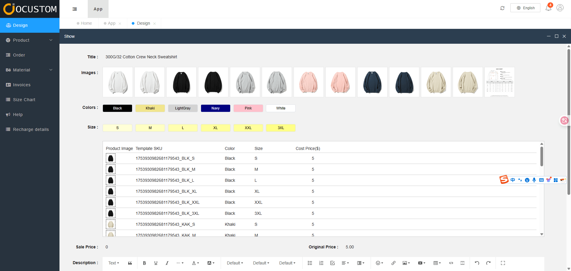 The basic template information you edit will be automatically populated into products customized using this template in the future.