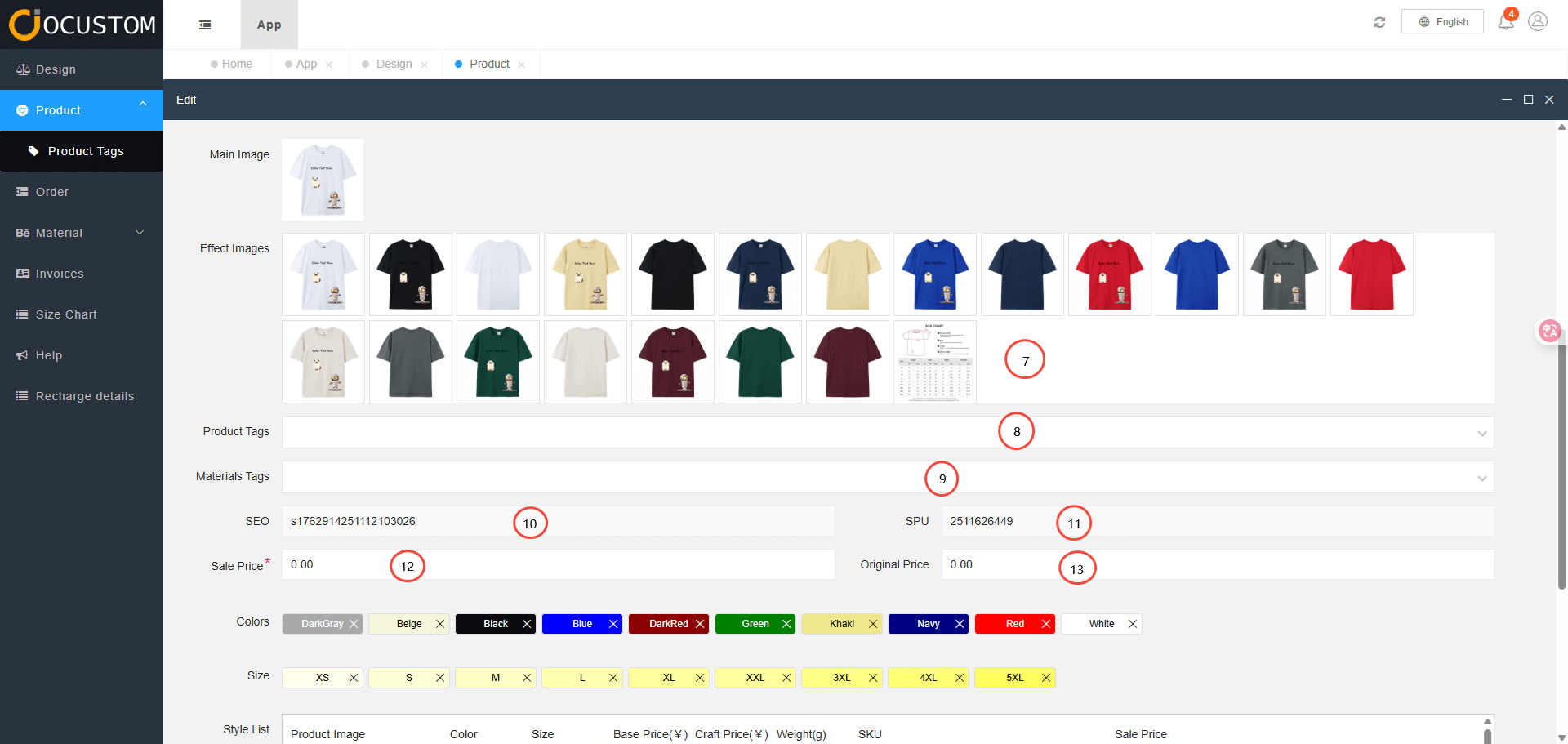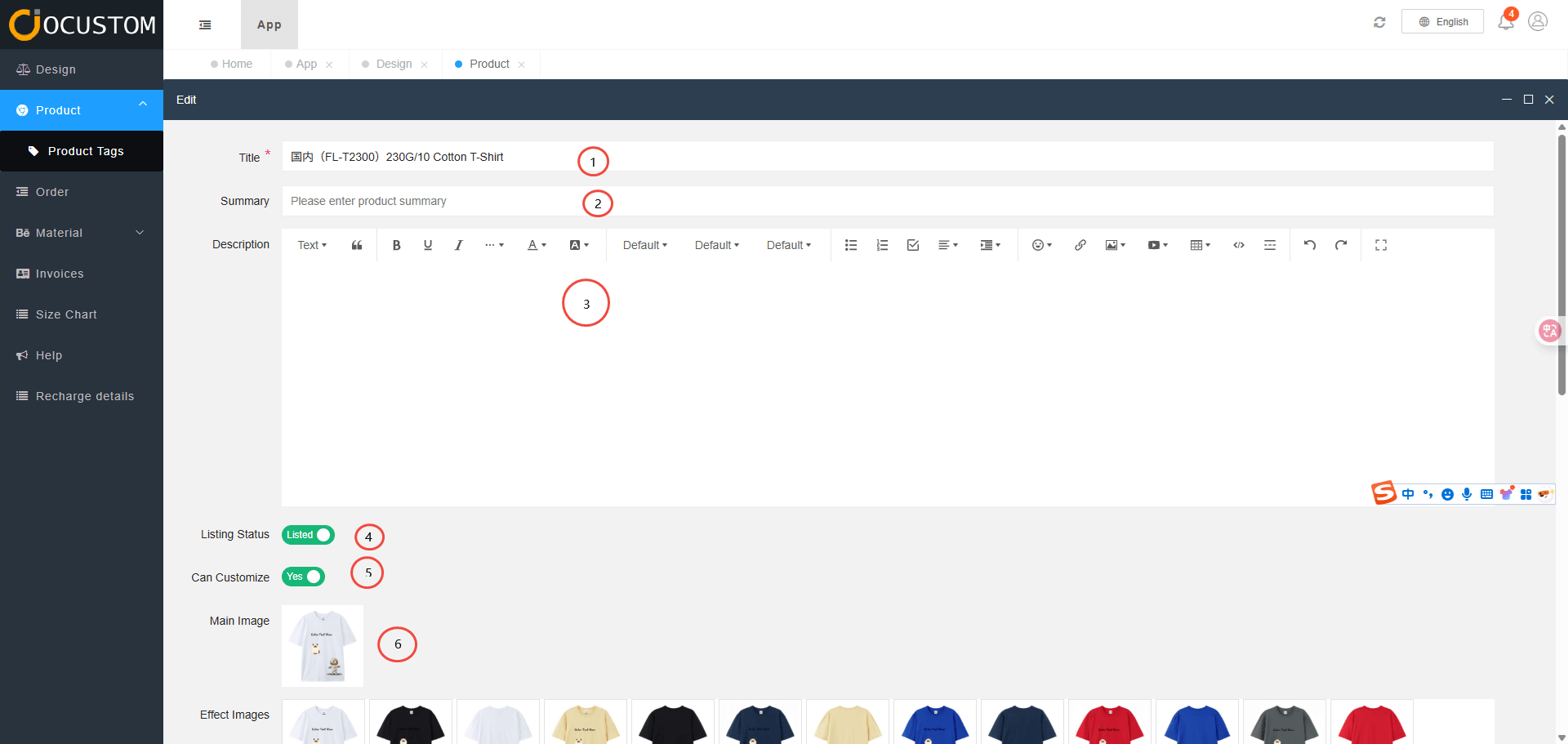 Edit Product Information Interface