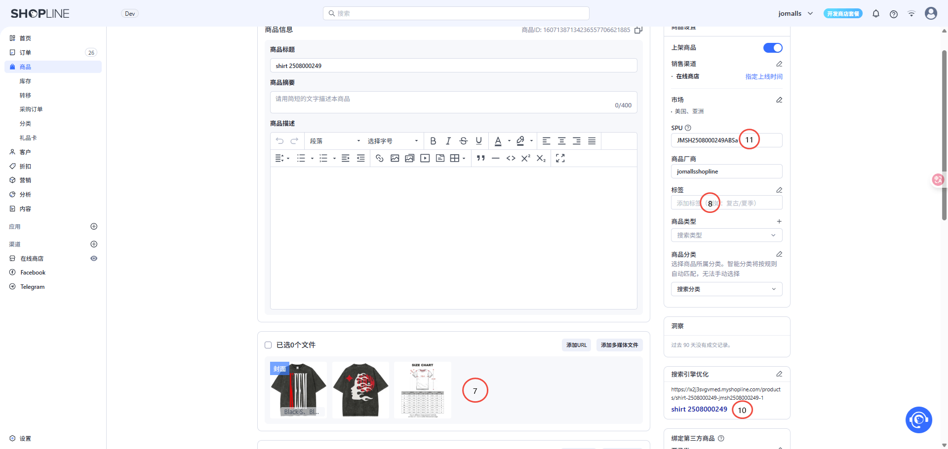 - Product Summary, For Shopline