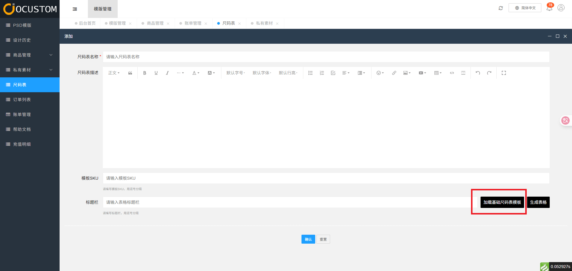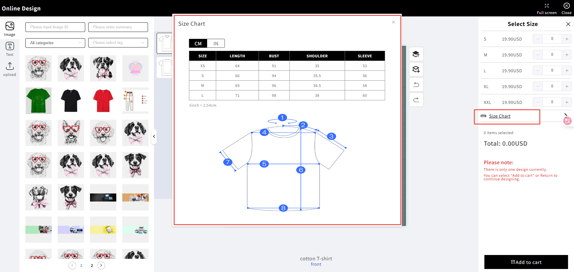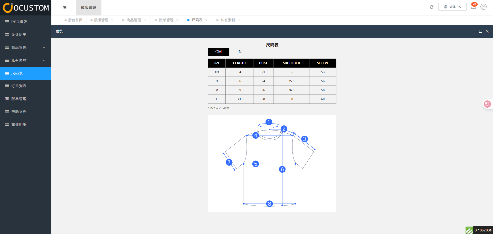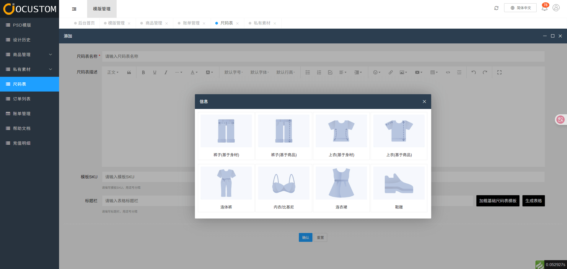 We provide default size charts for 8 product types. You can load them directly and modify them for use.